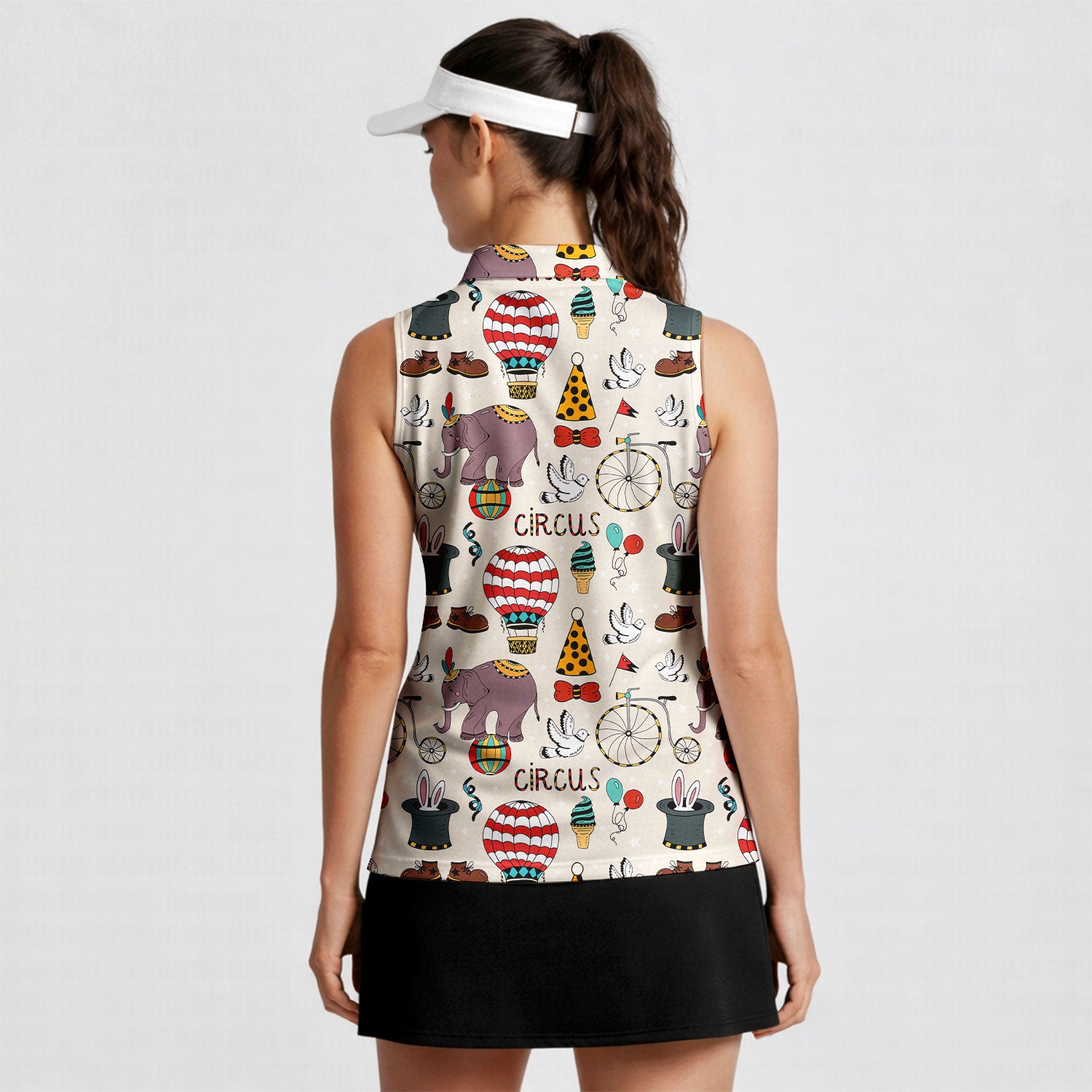 Lead A Circus Animal Pattern - Ladies Sleeveless Golf Polo Shirt