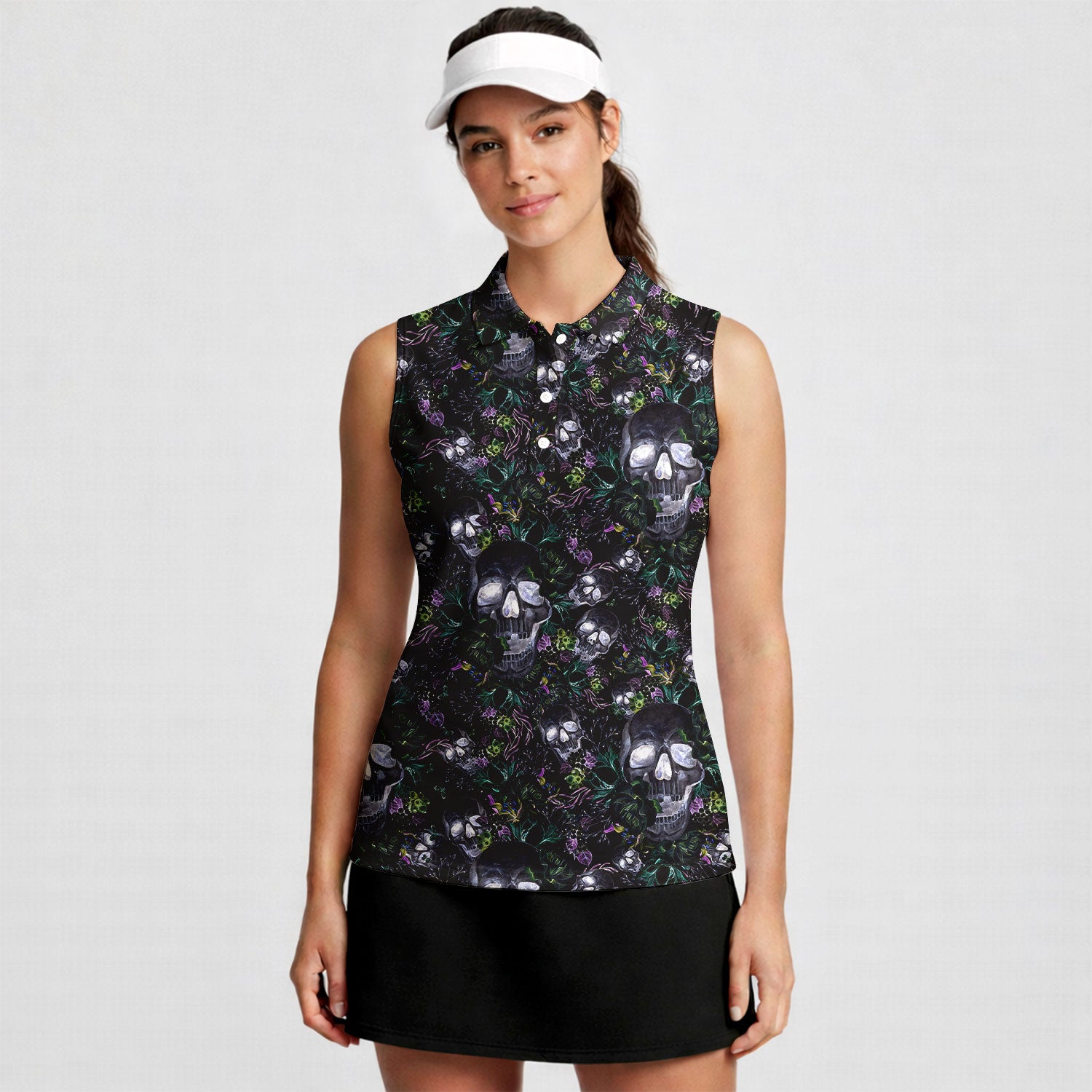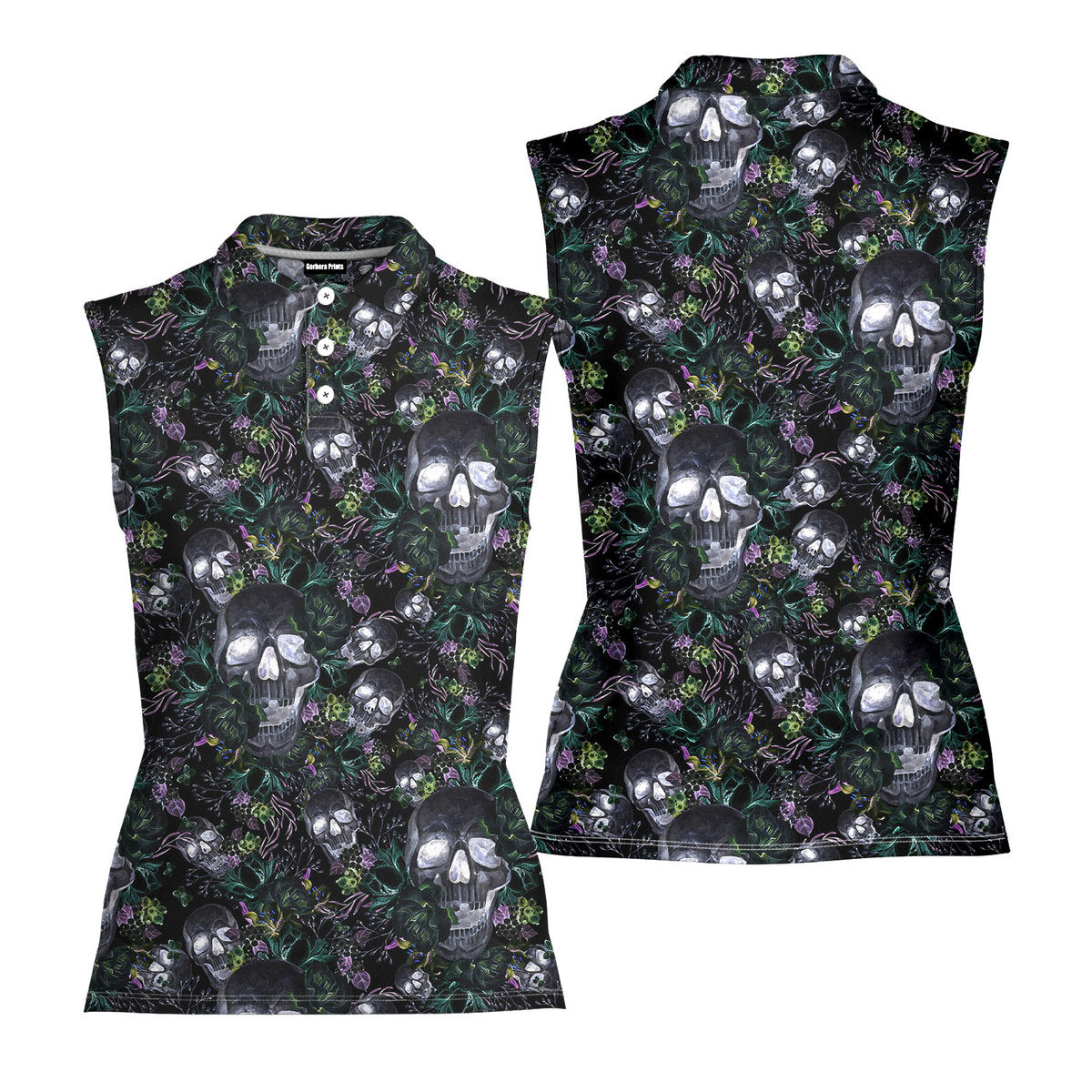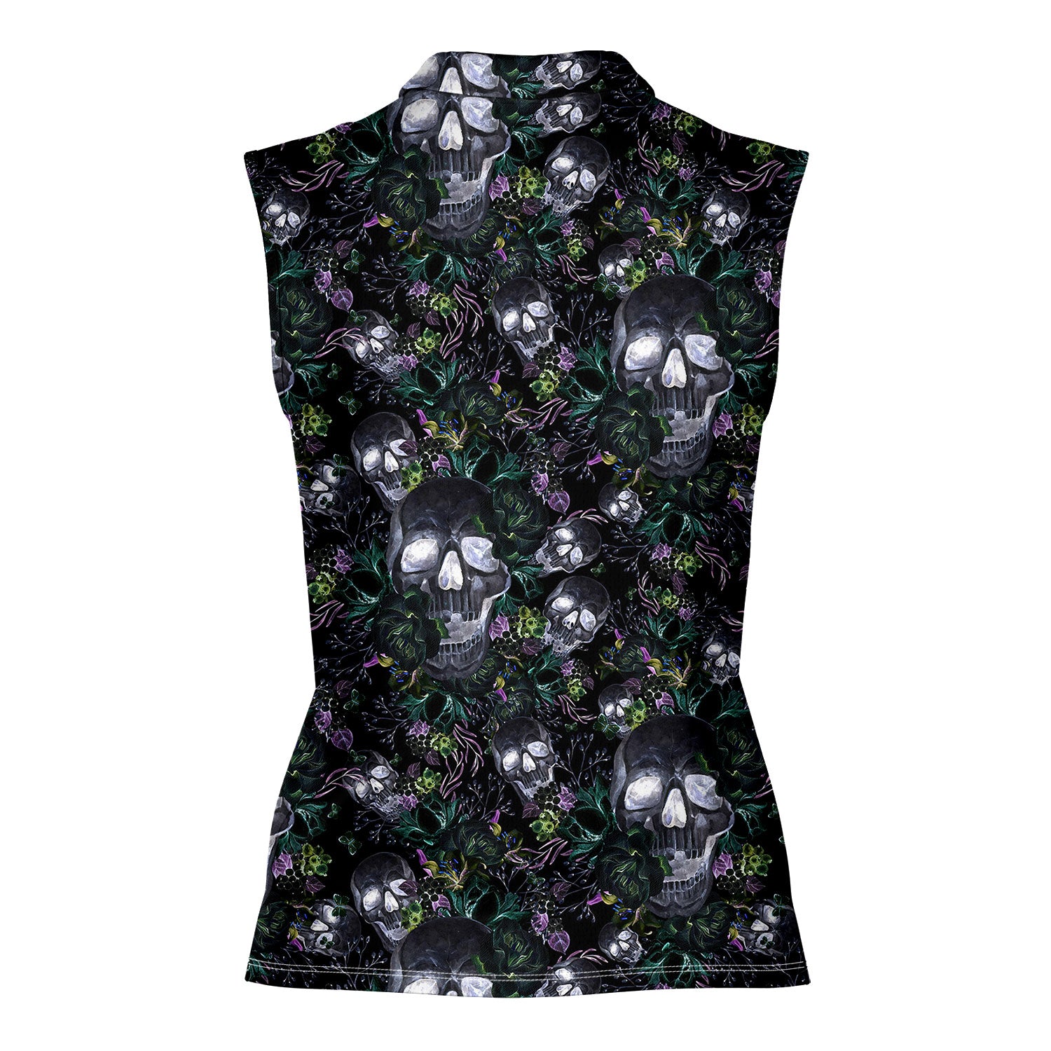 Skull Florals Halloween Style - Ladies Sleeveless Golf Polo Shirt