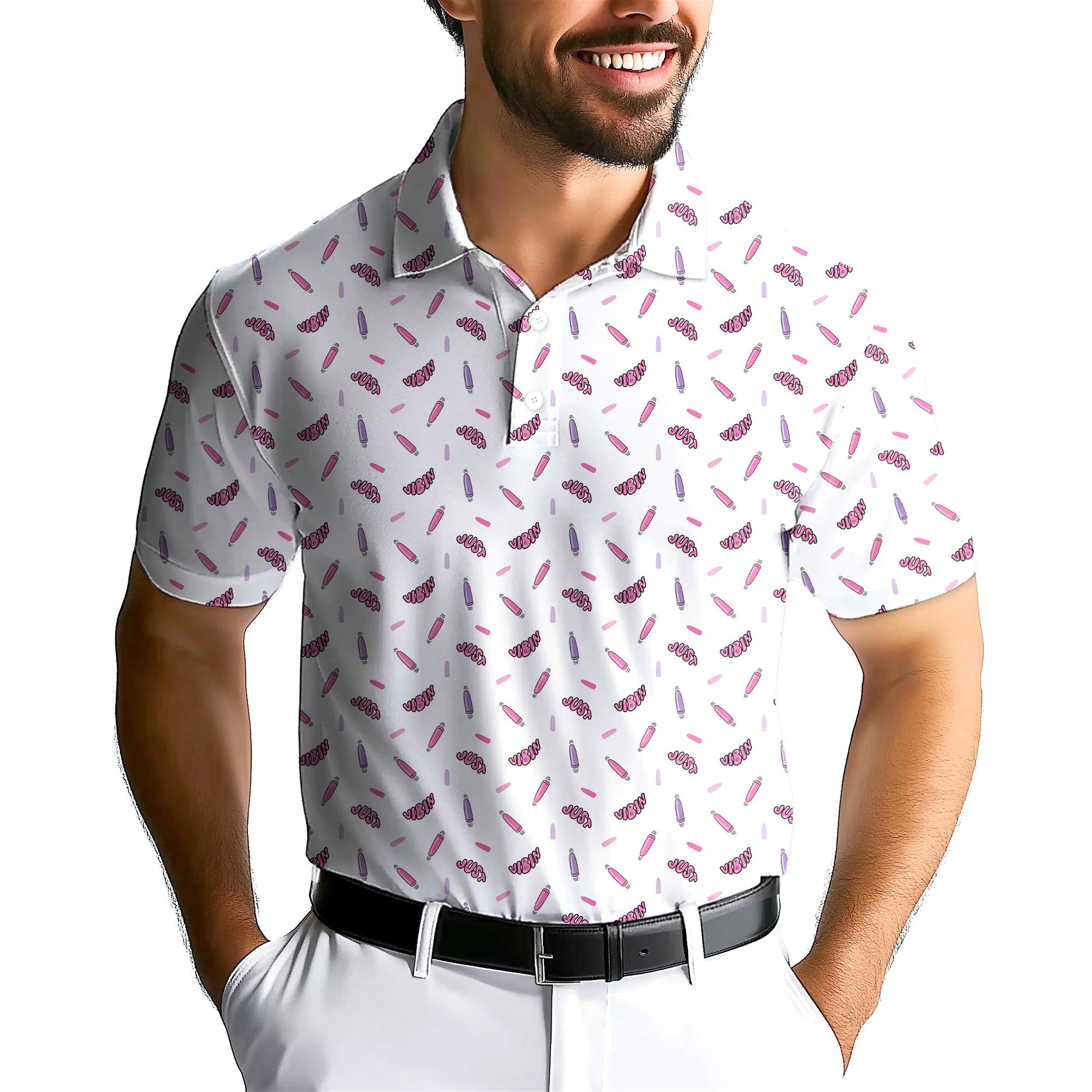 Just Vibin, designed to meet the discerning needs of those with impeccable tastes. Crafted with the utmost professionalism, it ensures a perfect and comfortable fit, making it ideal for various occasions, whether it's a night out, office attire, business casual, golf sessions, leisure activities, or simply lounging at home. With its wrinkle-resistant design, 4-way stretch, and quick-drying technology, this shirt is built to perform exceptionally, no matter the occasion. Elevate your style and comfort today!