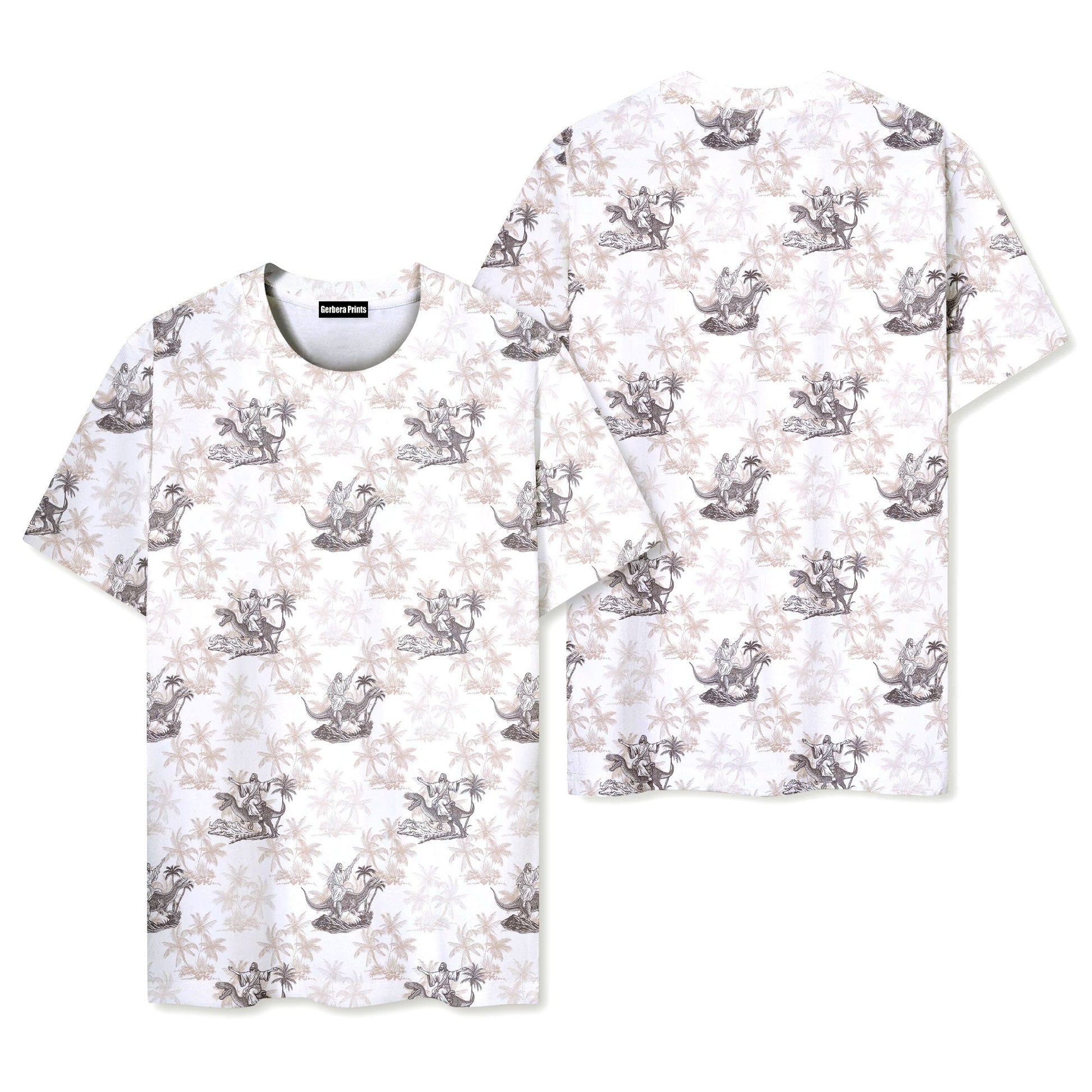 Jesus Riding Dinosaur - Funny T Shirt features a comfortable fit for active days. T-shirts are generally made of a stretchy, light, and easy-to-clean. It's comfortable and soft for all. Sample T Shirt are optimized for beautiful brilliance across all printing methods. With a classic fit and crew neck, the all-over printability enables you to bring to life creative, one-of-a-kind designs. This is a definite must-own and all-over print shirt sure to be your next favorite too!