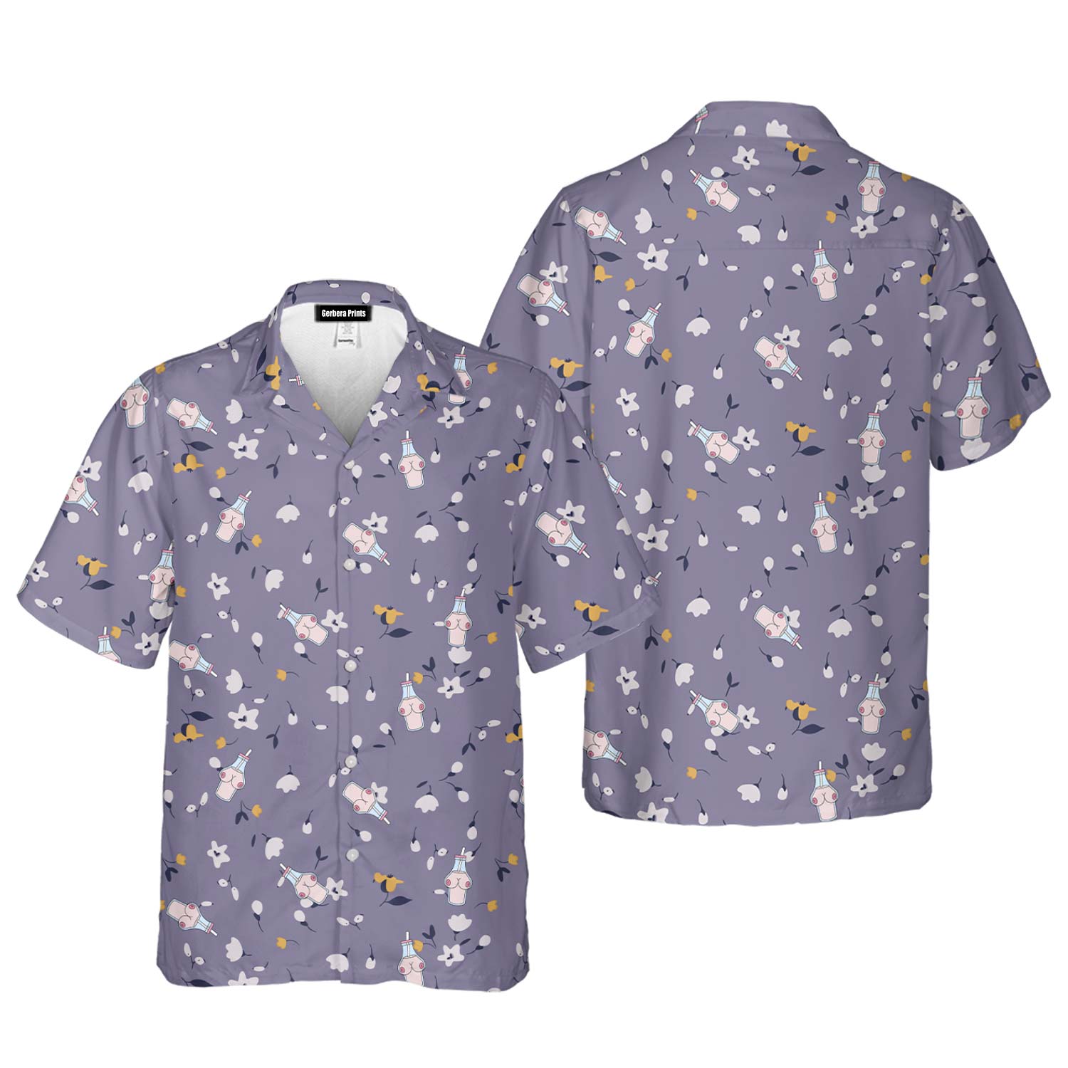 Milk Bottle - Funny Golf Hawaiian Shirt exclusively designed by Gerbera Prints. What sets these shirts apart is the ability to personalize them with your name. Each shirt is meticulously handcrafted to the highest quality standards. Whether you're relaxing at the beach or making a statement at a summer gathering, our customizable Hawaiian shirts are designed to make you stand out and feel fantastic. Explore the perfect Hawaiian shirt to match your style, personalized just for you!
